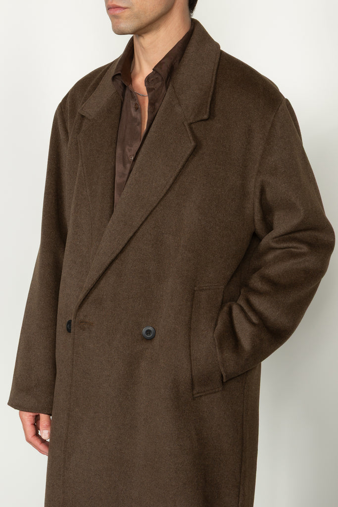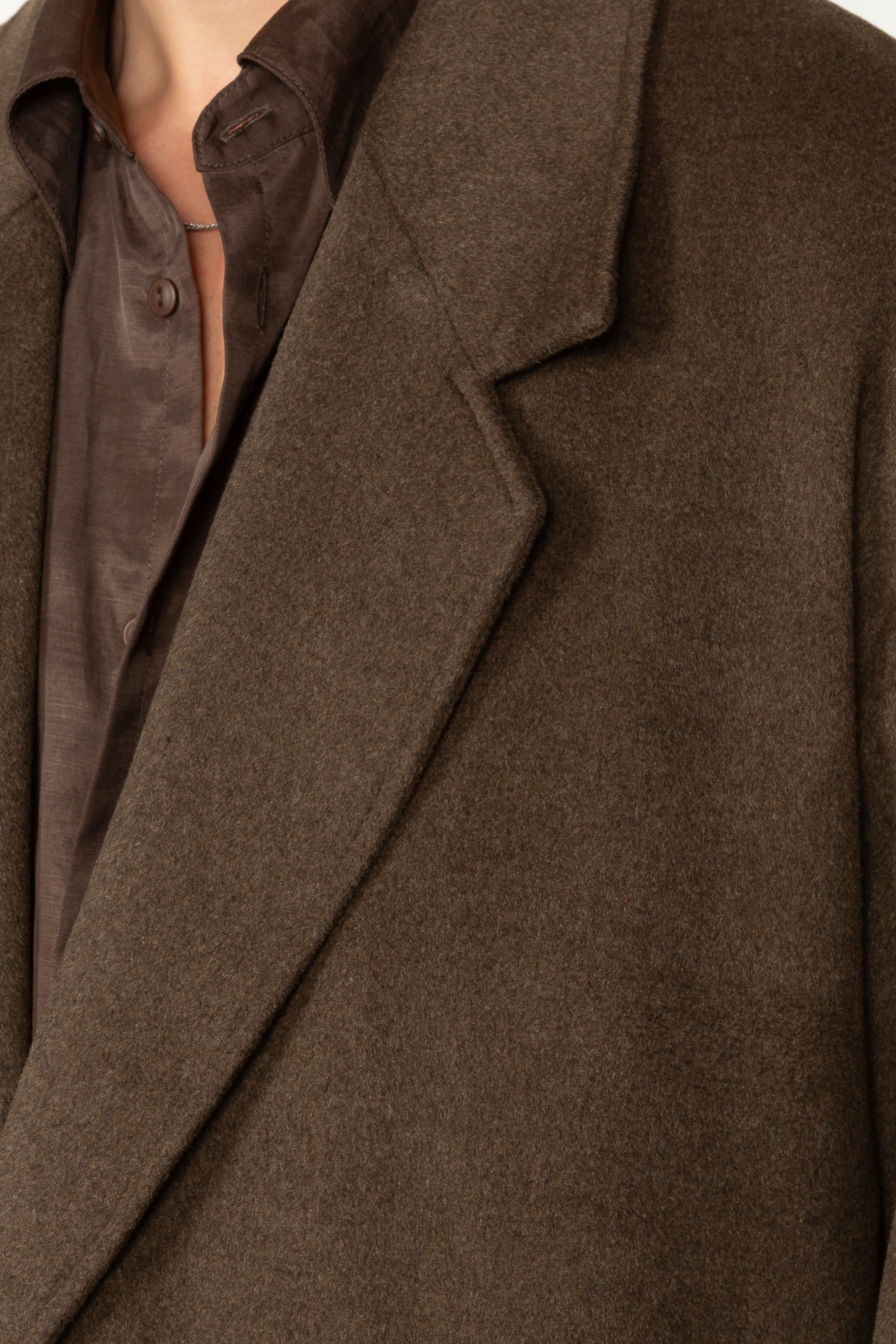 • Also pictured with our Drop Shoulder Sweater in Dark Brown Purl Knit, Wide Leg Single Pleat Trouser in Hazelnut, and Long Sleeve Oversized Top in White