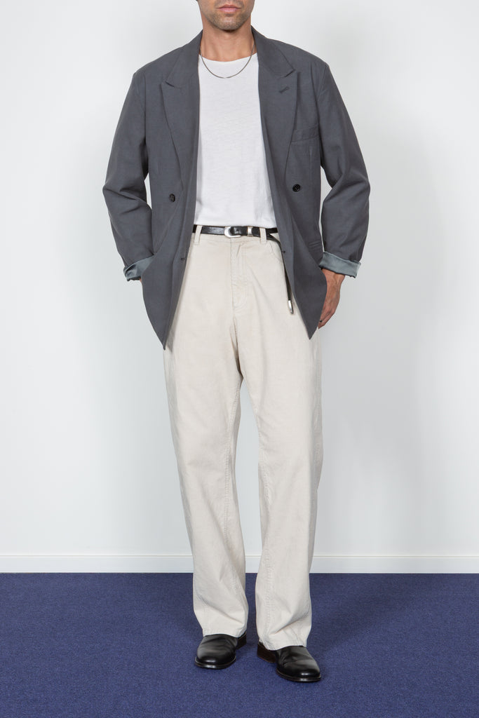 • Pictured with our Unstructured Relaxed Double Breasted Blazer in Charcoal (coming soon) and Minimal T-Shirt in Off-White Silk / Cotton