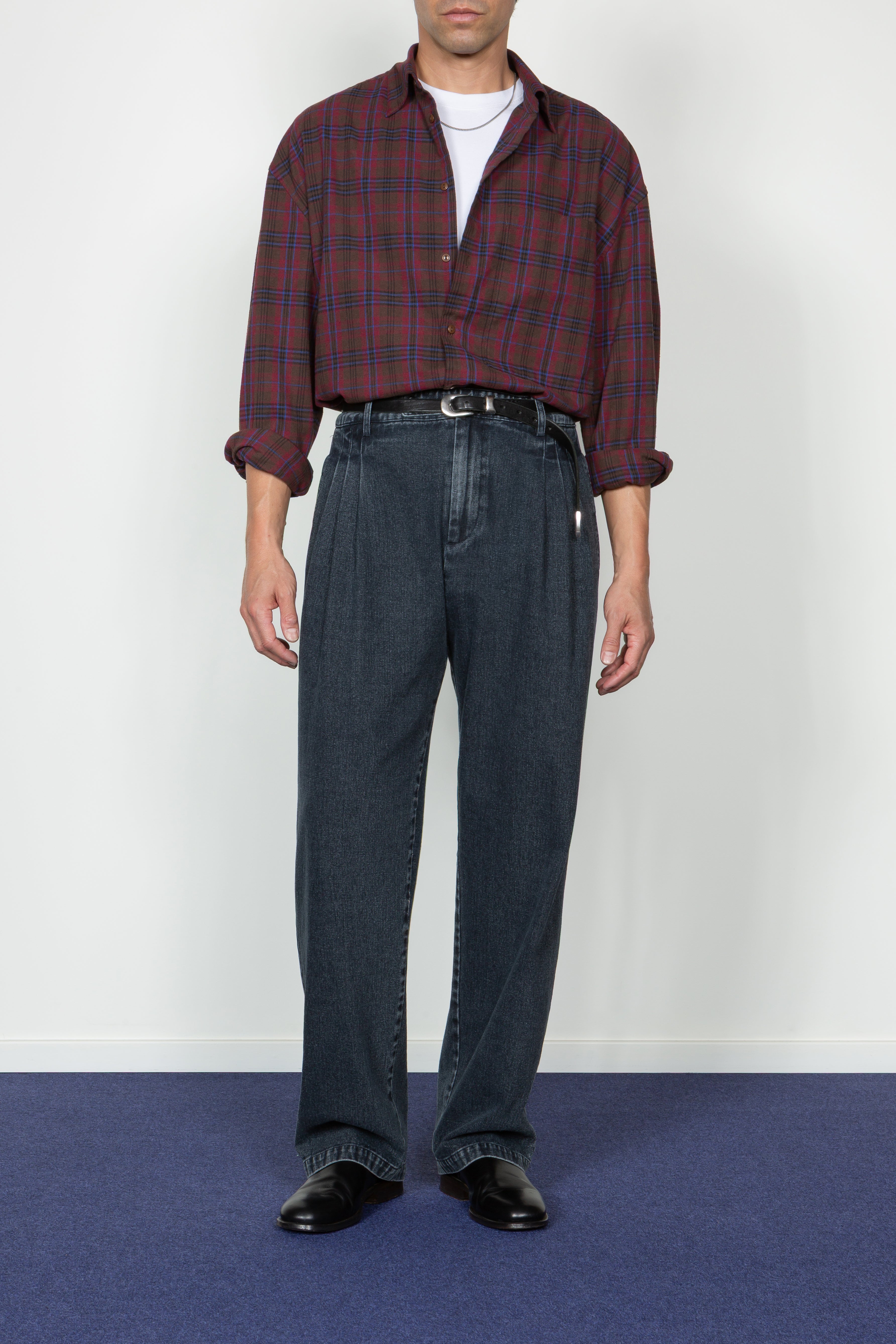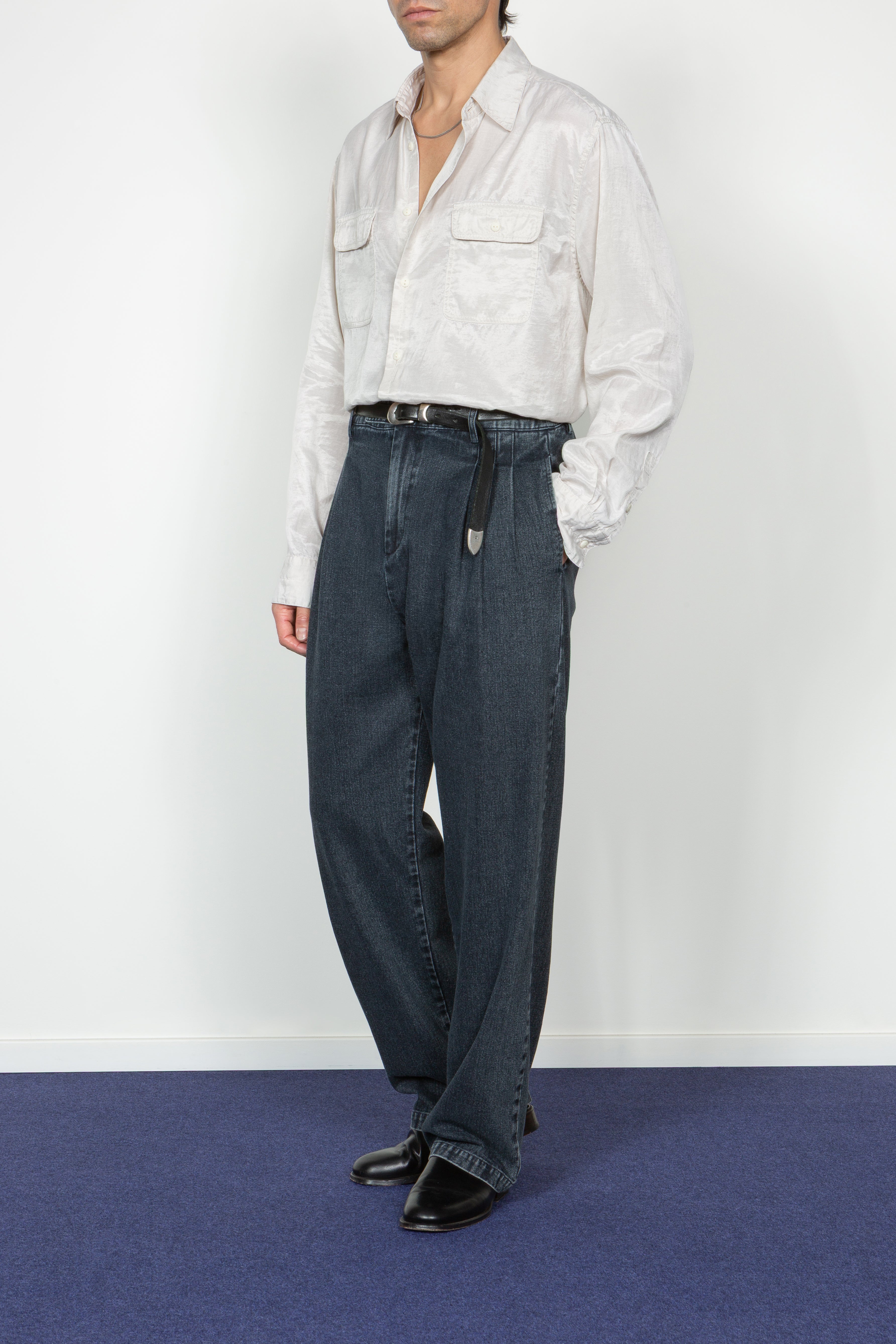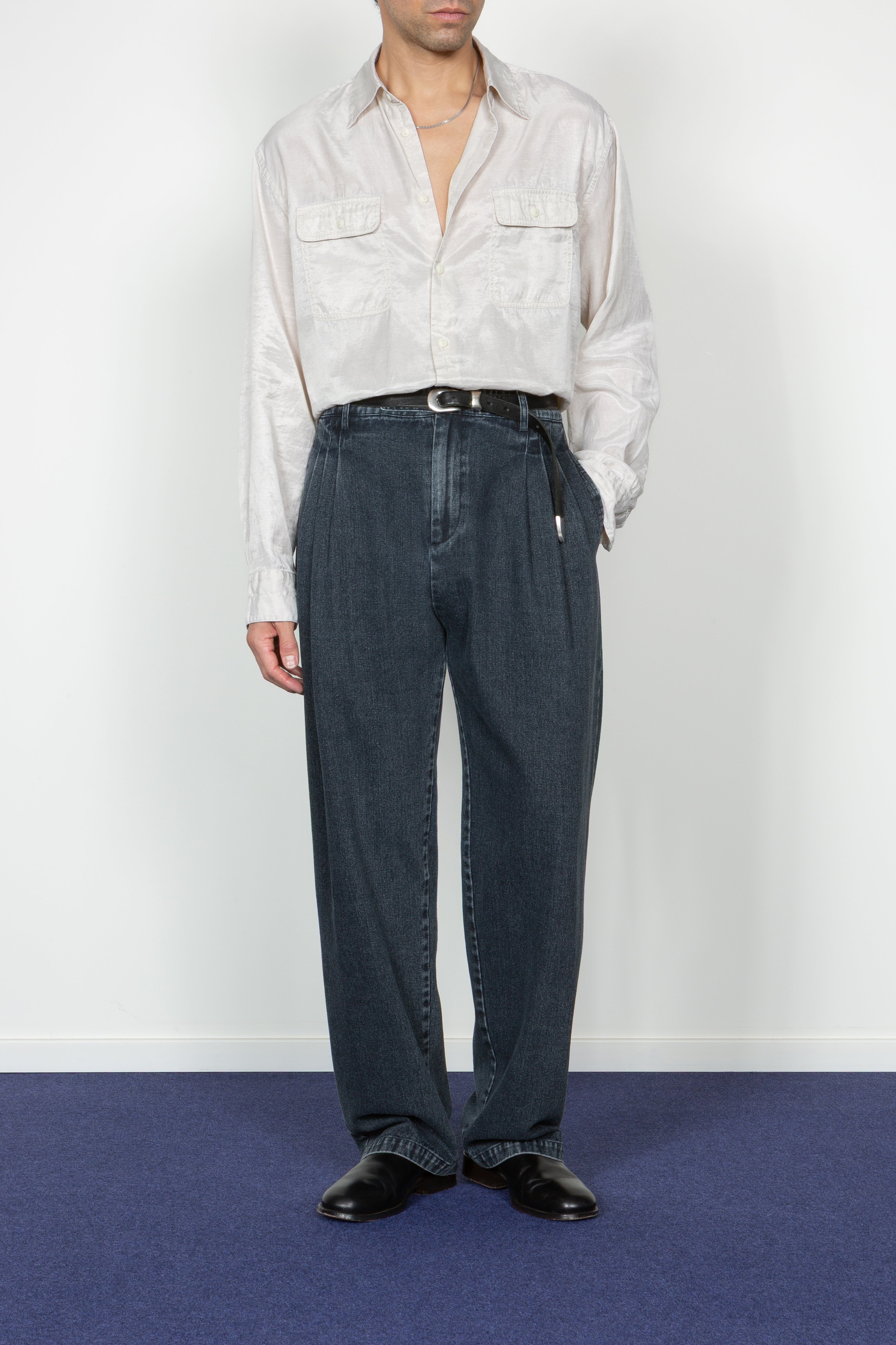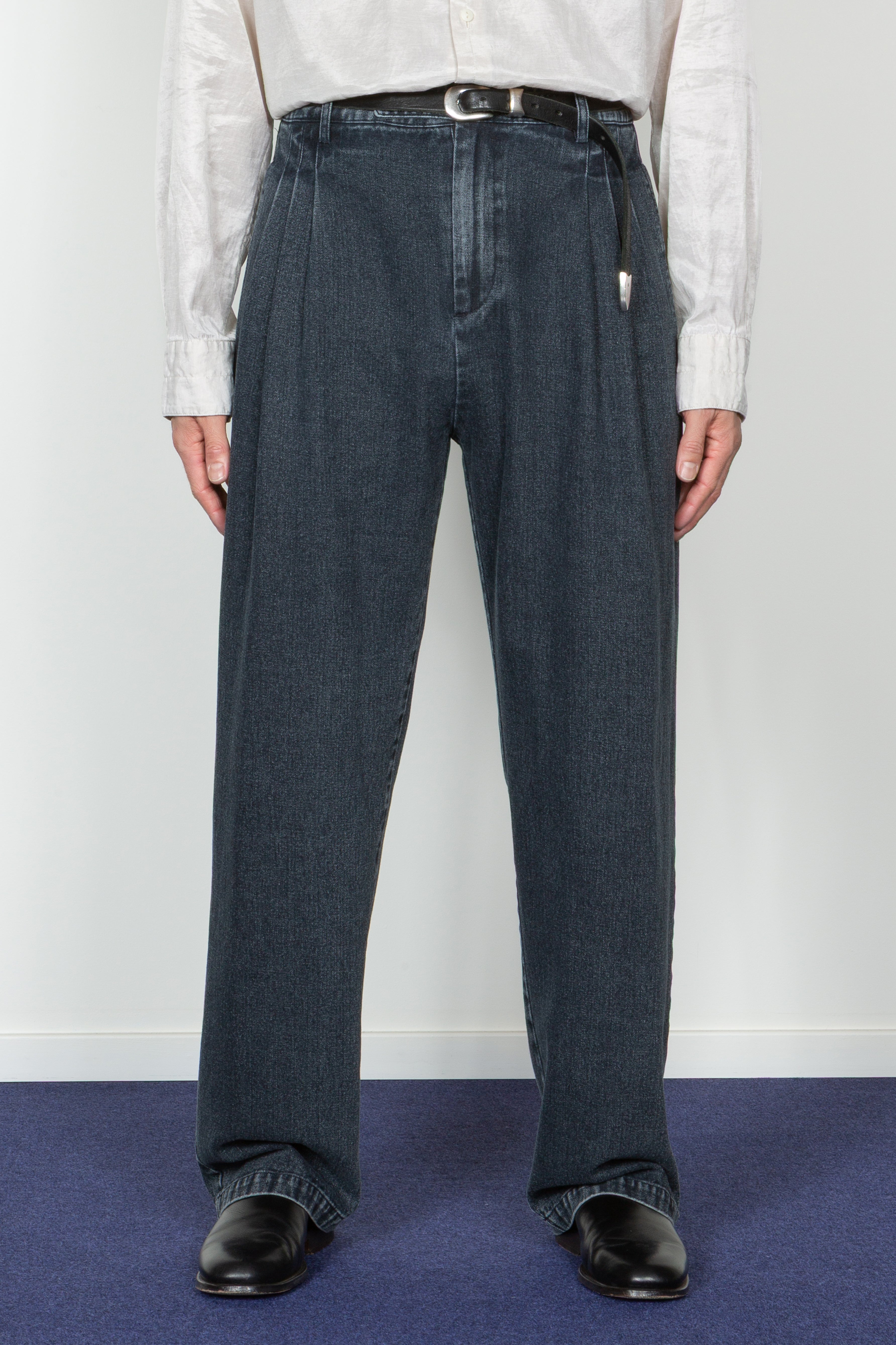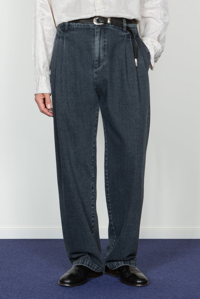Triple Pleated Wide Leg Trouser - Dark Indigo Denim (PRE-ORDER Est. Ship Date 12/10/25)