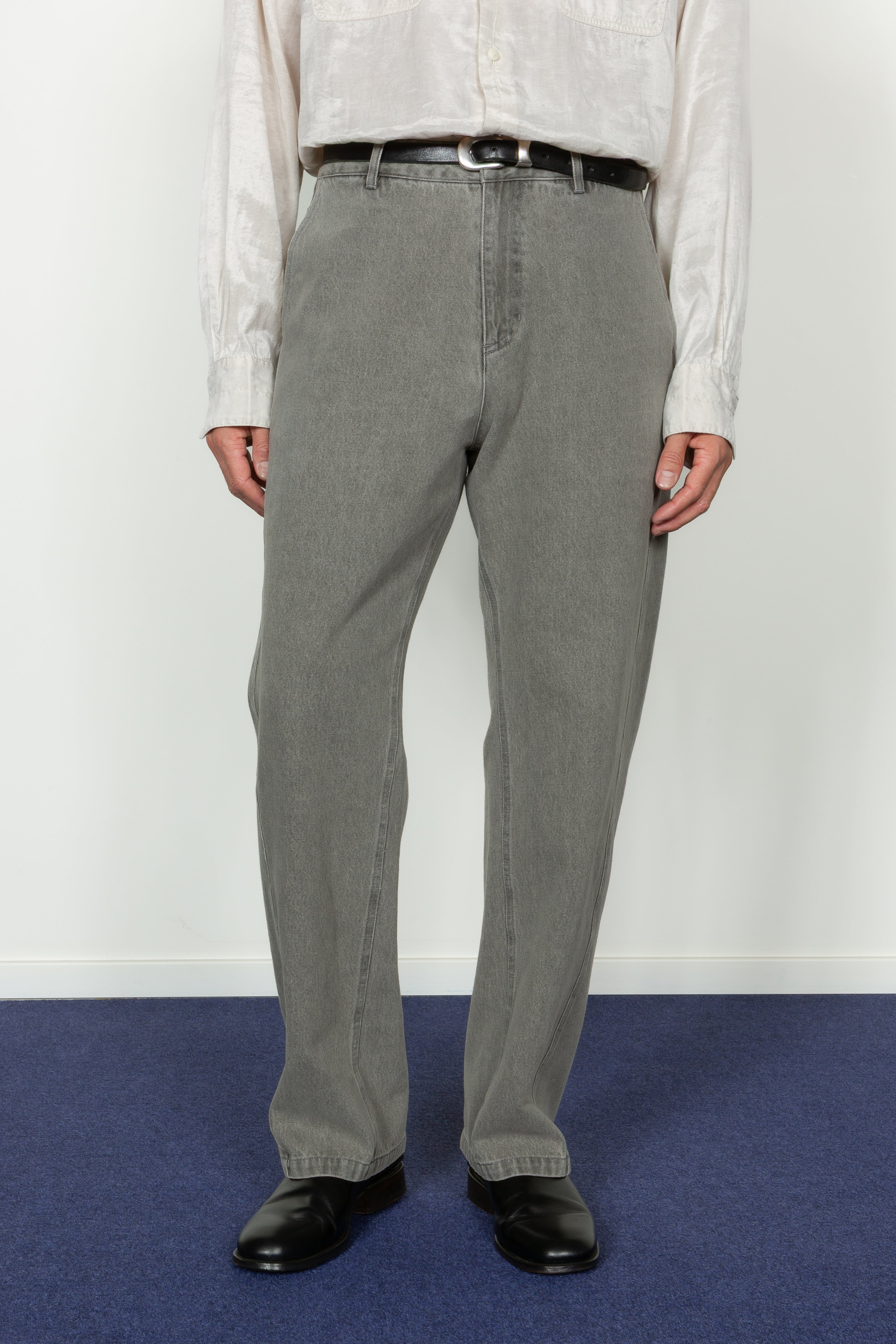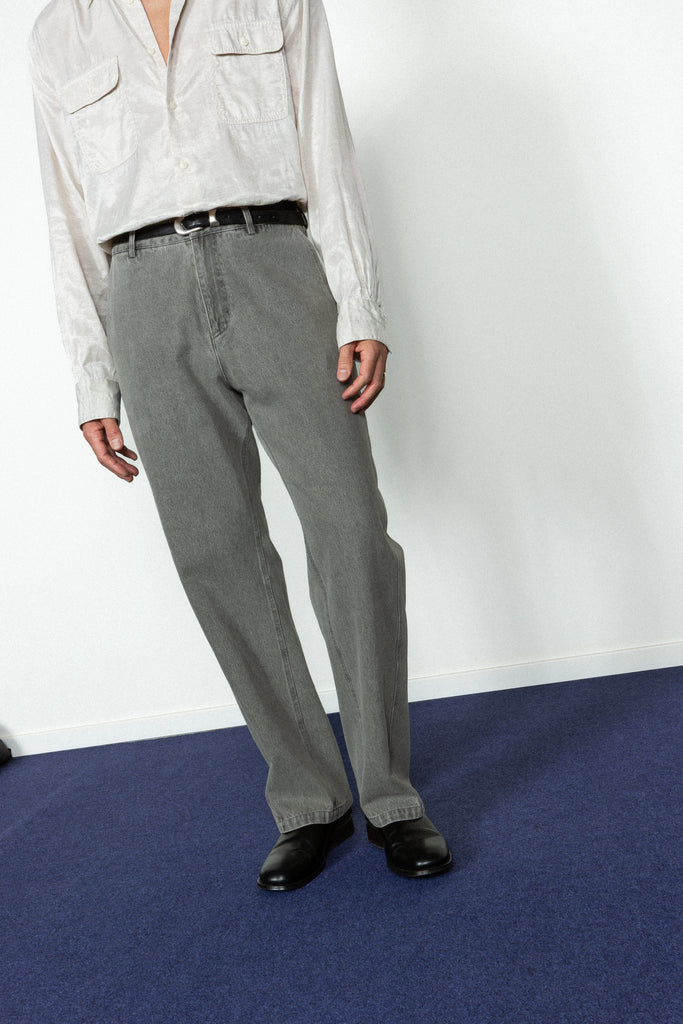 • Loose fitting, straight leg denim pant