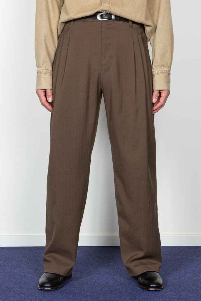Triple Pleated Wide Leg Trouser - Brown Herringbone (PRE-ORDER Est. Ship Date 12/10/25)