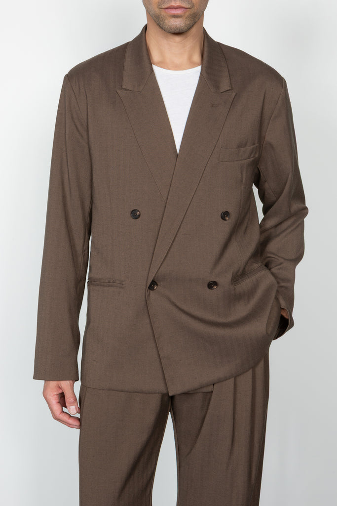 Unstructured Relaxed Double Breasted Blazer - Brown Herringbone (PRE-ORDER Est. Ship Date 12/10/25)