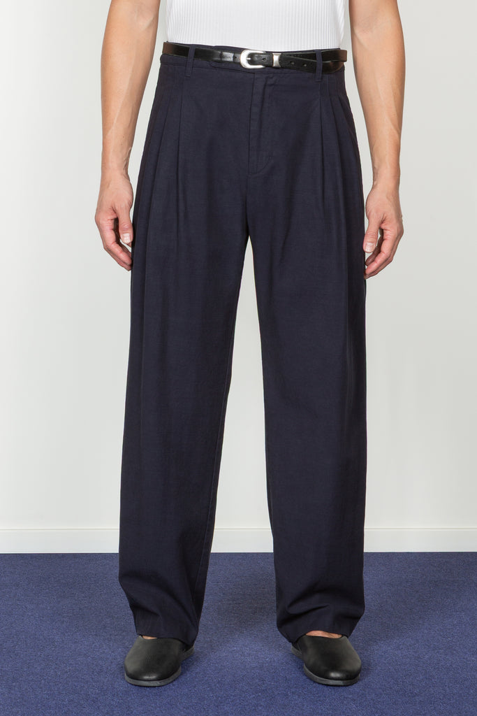 Triple Pleated Wide Leg Trouser - Navy (PRE-ORDER Est. Ship Date 12/10/25)