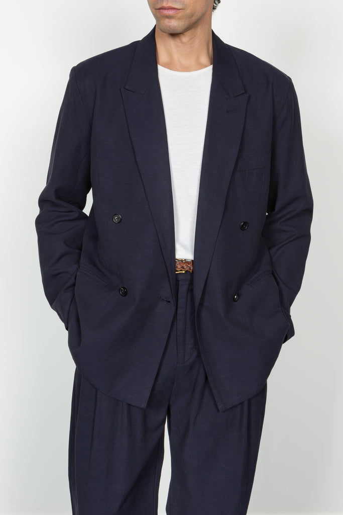 Unstructured Relaxed Double Breasted Blazer - Navy (PRE-ORDER Est. Ship Date 12/10/25)