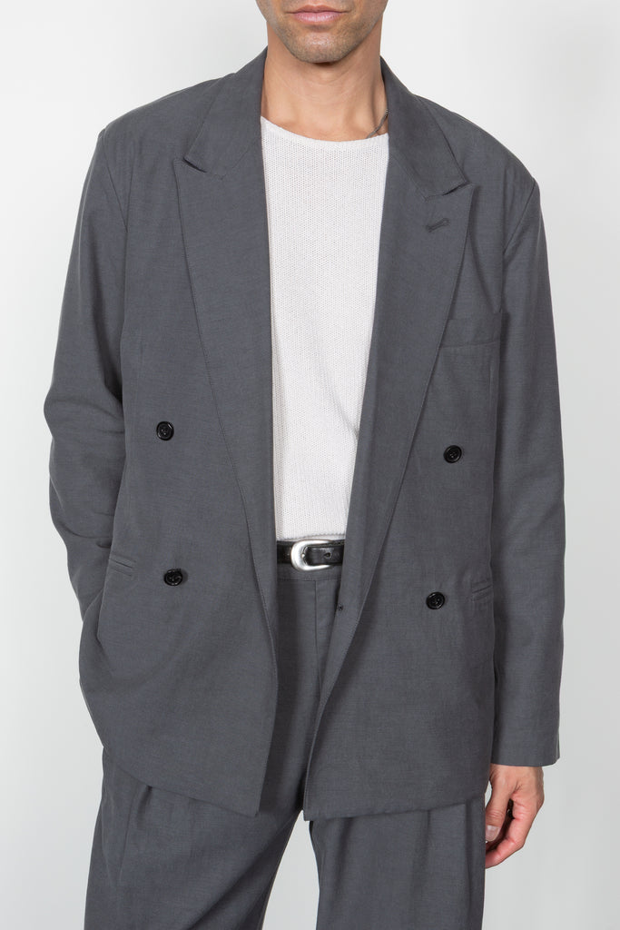 Unstructured Relaxed Double Breasted Blazer - Charcoal (PRE-ORDER Est. Ship Date 12/10/25)