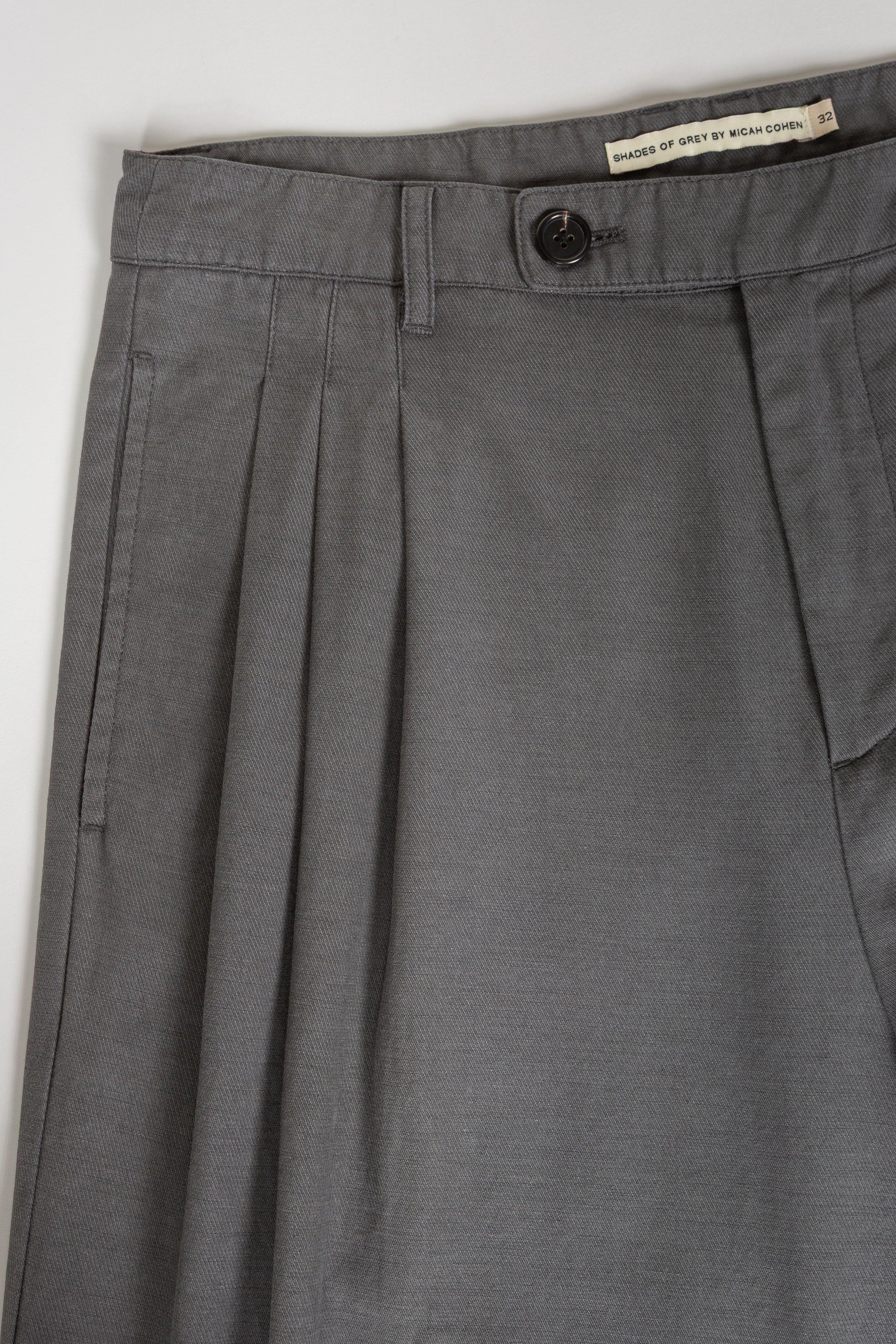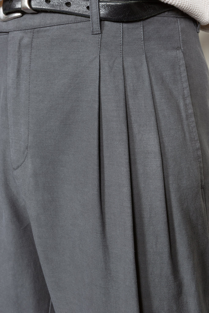 • Triple pleated front with pleats sewn down part way for a flattering fit