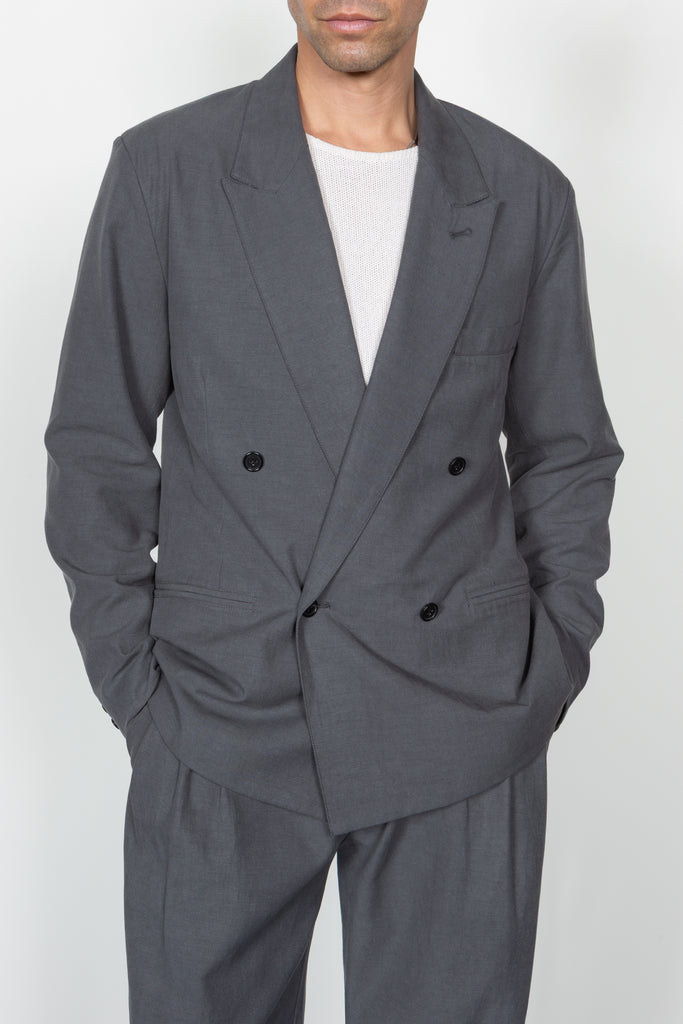 Unstructured Relaxed Double Breasted Blazer - Charcoal (PRE-ORDER Est. Ship Date 12/10/25)