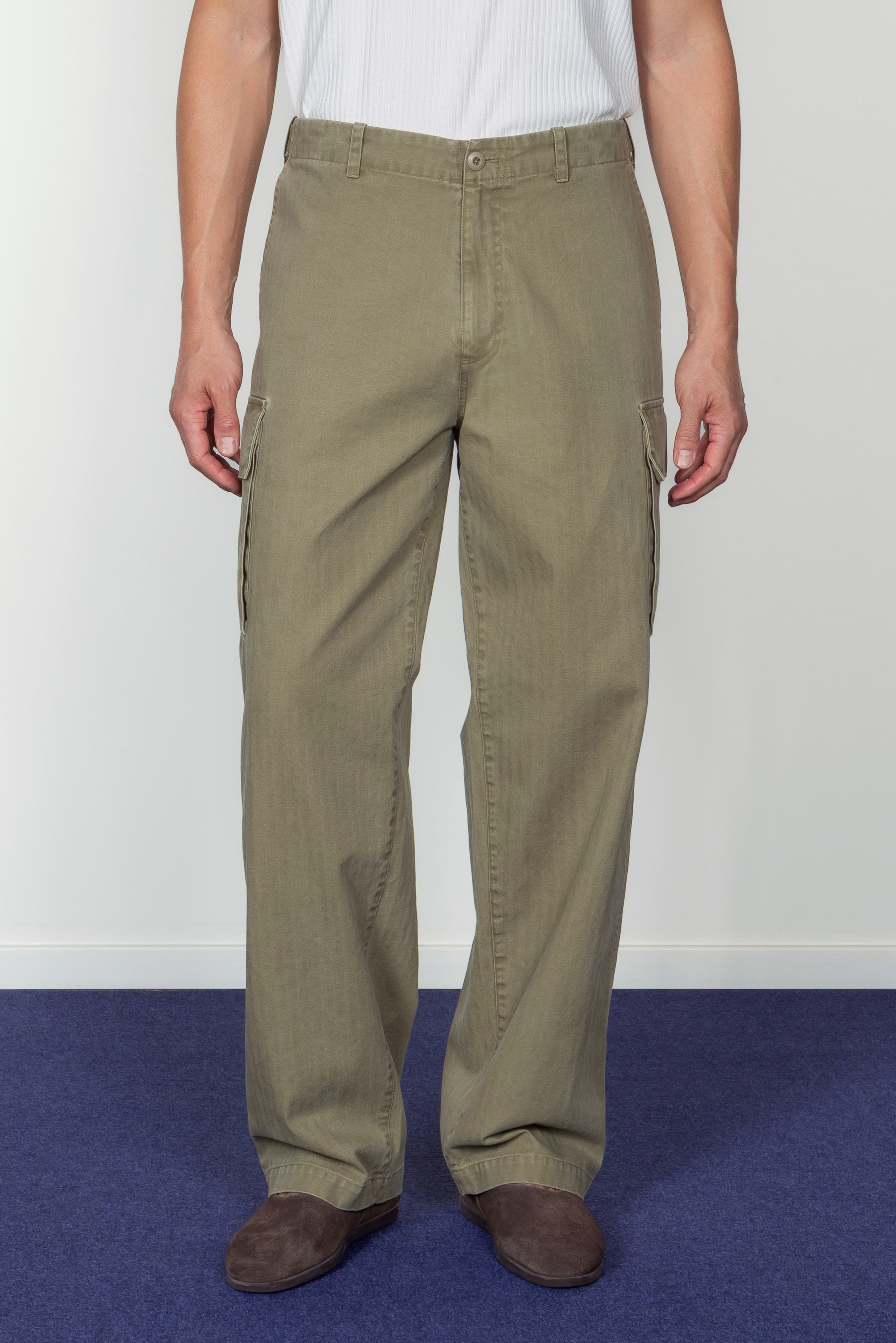 • Slant pockets at the waist and patch pockets with buttoned flaps on each leg