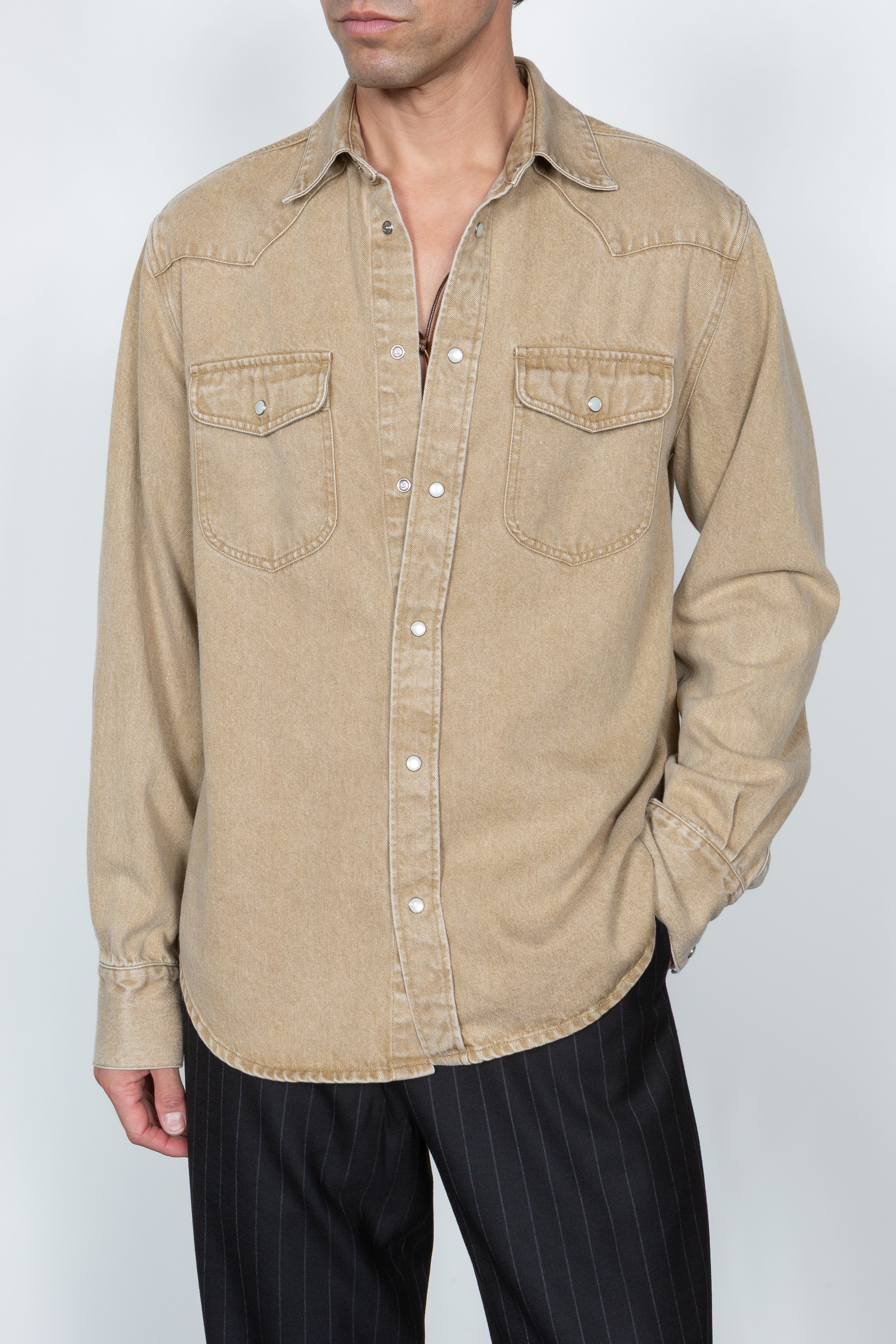 • Relaxed fit, Western inspired button down shirt