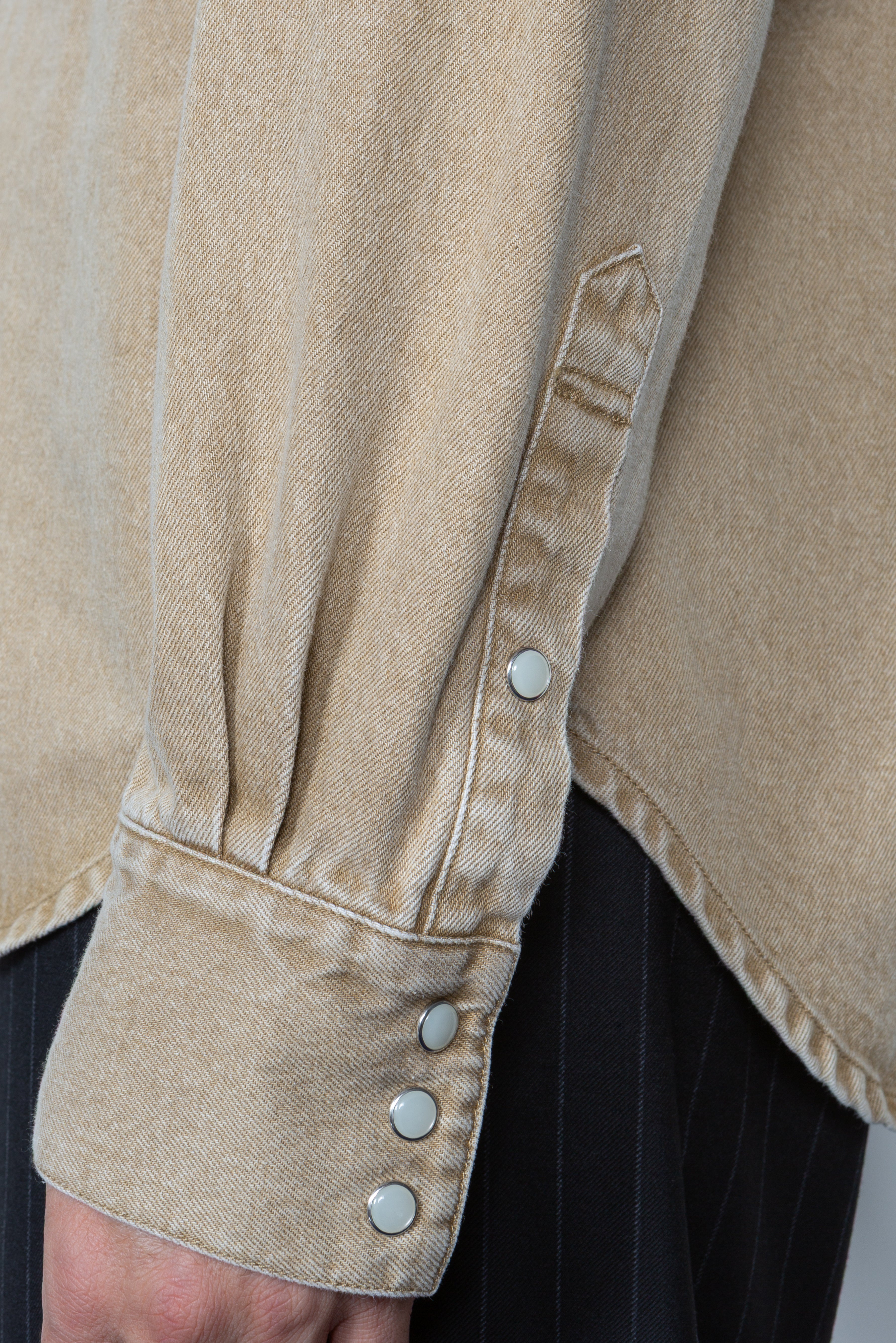 • Pearl snap button front closure and cuffs