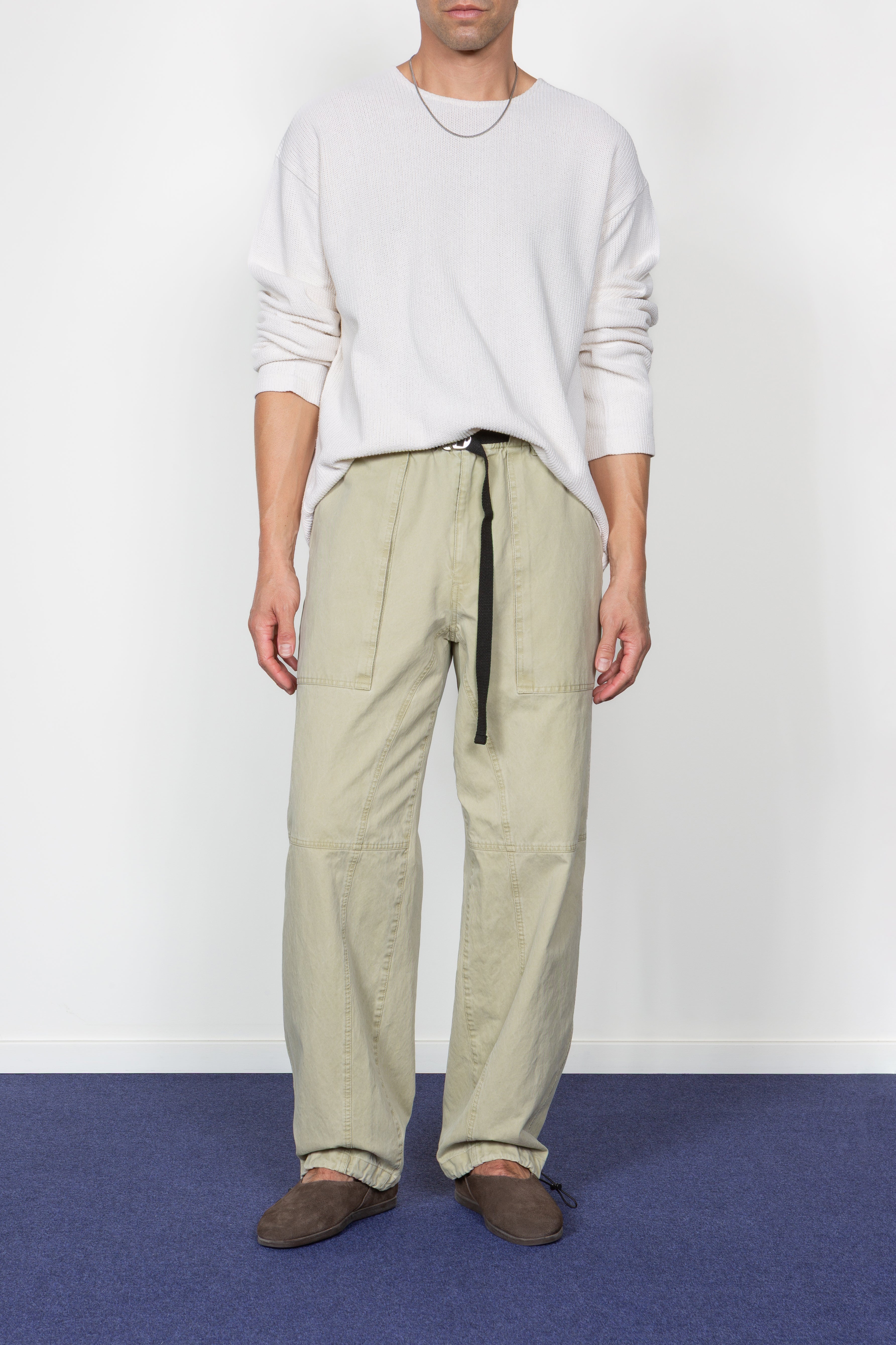 • Slant pockets below the waist and decorative seam and panel detail throughout the leg