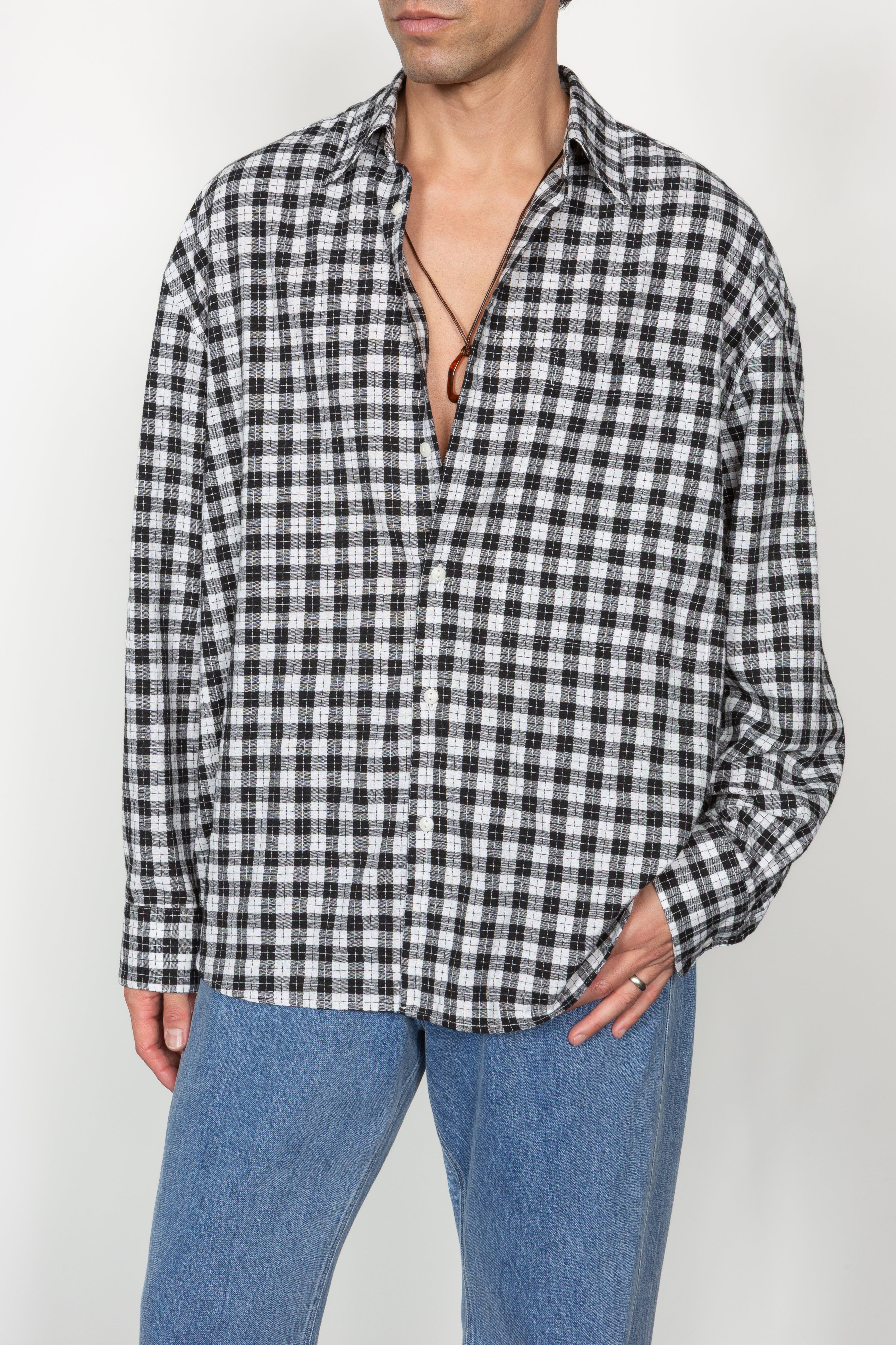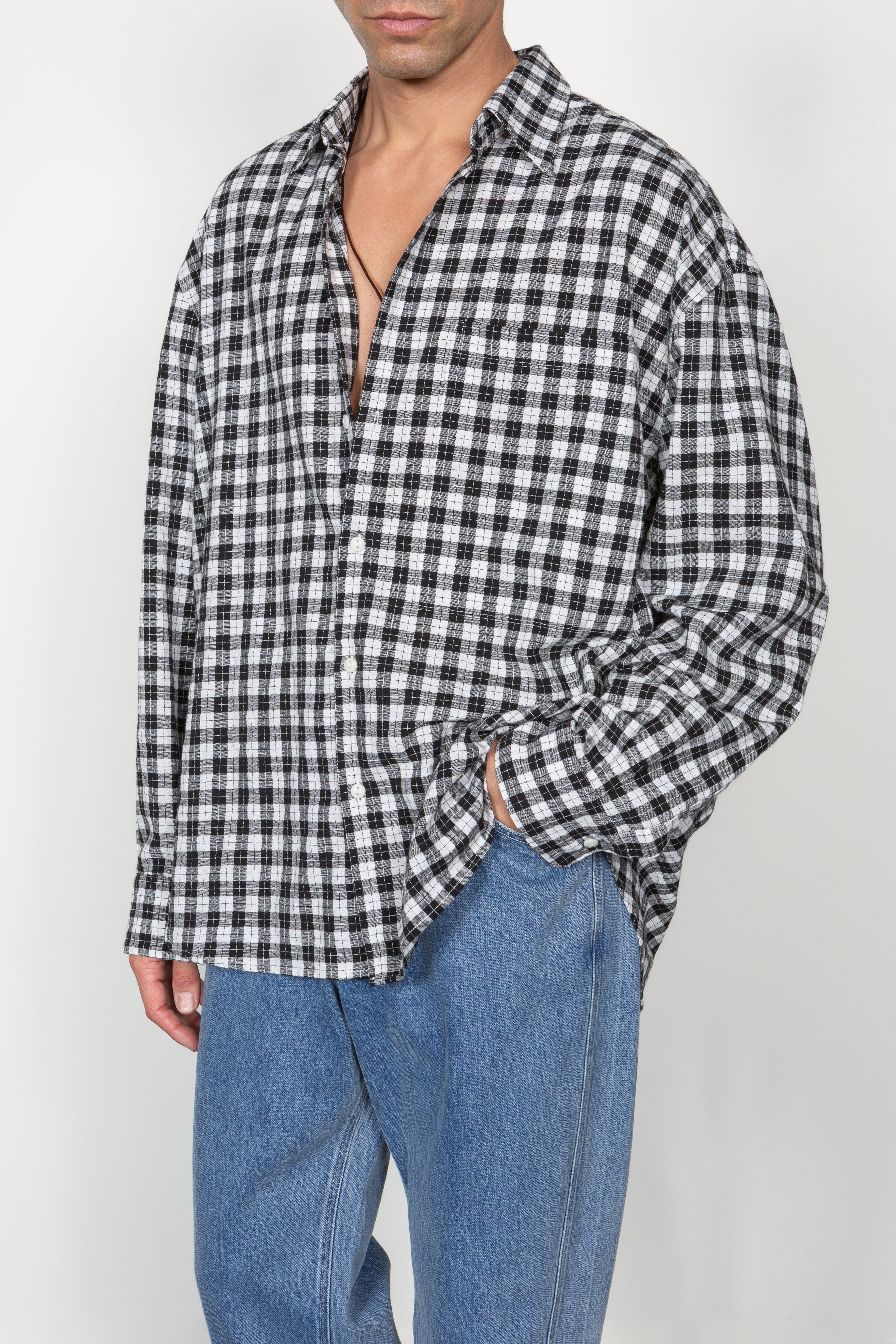 • Our most oversized shirt silhouette cut from a cotton/linen blend gingham check